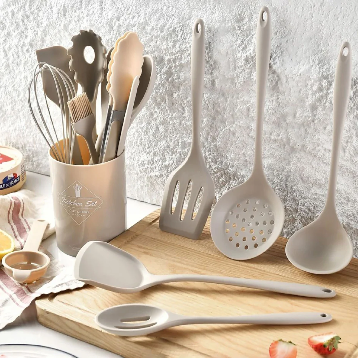 15-teiliges rosa Silikon-Küchengeschirr mit Aufbewahrungseimer, Spatel, Schaufel, Schöpfkelle, Kochgeschirr, Küchenutensilien-Set, antihaftbeschichtete Kochutensilien photo review
