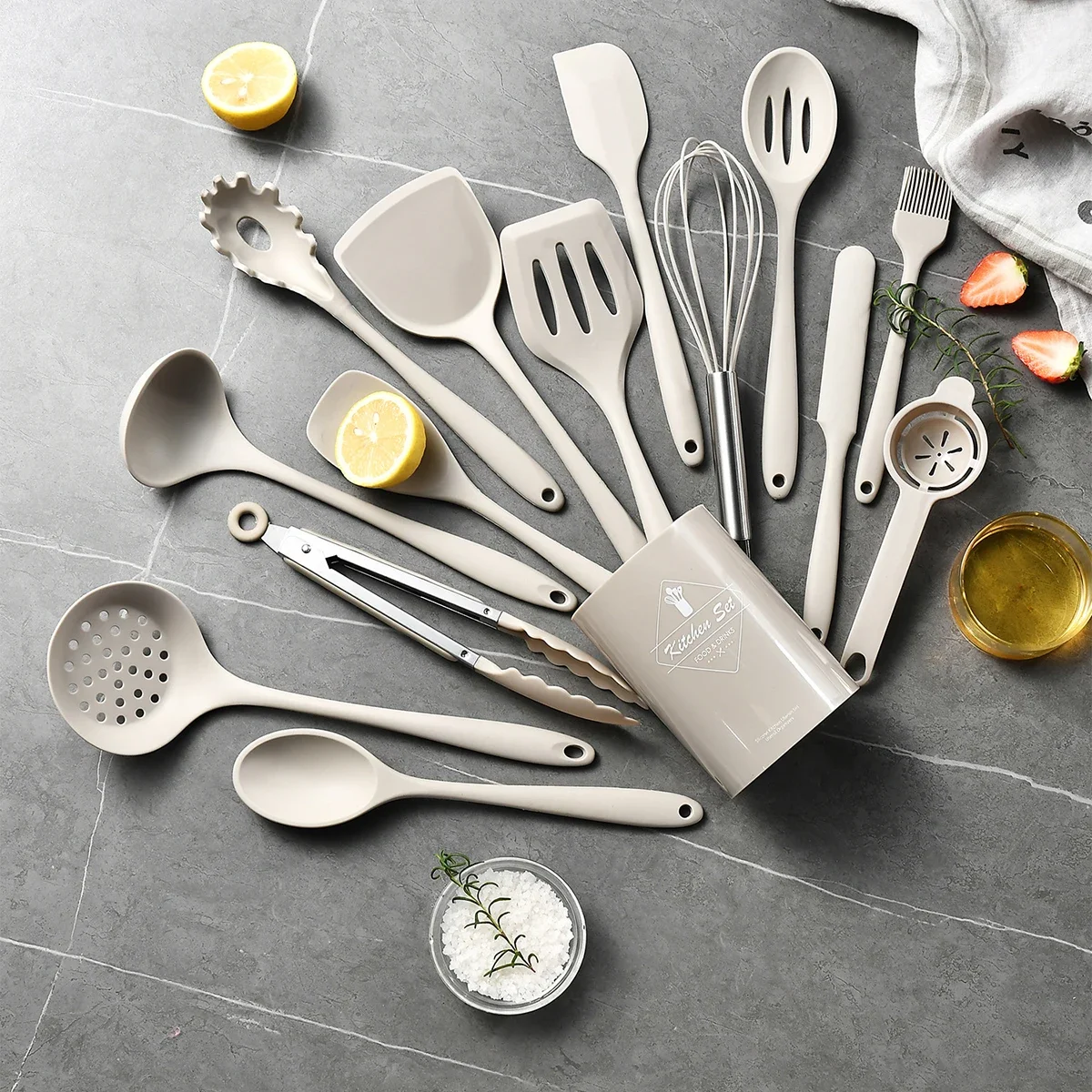 15-teiliges rosa Silikon-Küchengeschirr mit Aufbewahrungseimer, Spatel, Schaufel, Schöpfkelle, Kochgeschirr, Küchenutensilien-Set, antihaftbeschichtete Kochutensilien